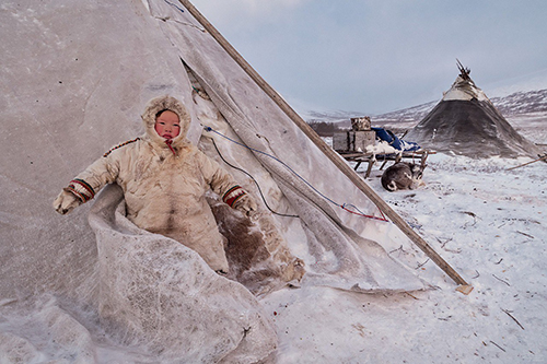 Перекочевка — это не просто переезд, а способ существования в пространстве-времени тундры. Морозная тишина тундры наполняется звуками работы — скрипом шестов, позвякиванием упряжи, покрикиванием на оленей. Через короткое время на месте стойбища останется лишь темный круг вытоптанного снега, а караван уже растянется лентой по белому бескрайнему пространству.